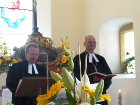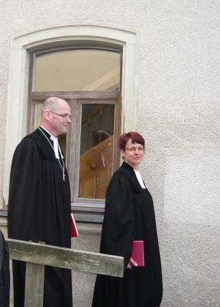 Auf dem Weg ins Gotteshaus: Dekan Oliver Bruckmann mit Pfrin. Valerie Ebert-Schewe |