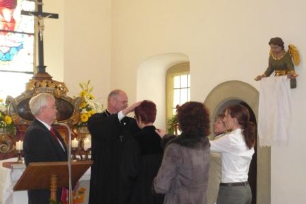 Segnung der Pfarrerin durch den Dekan unter Assistenz von Kirchenvorstehern |