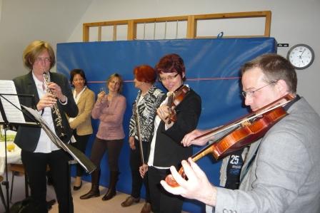 Revitalisierte ihre Geigenspielkenntnisse: Pfrin. Ebert-Schewe zwischen Pfrin. Eva Thelen und Pfr. Dr. Wolfgang Weich |