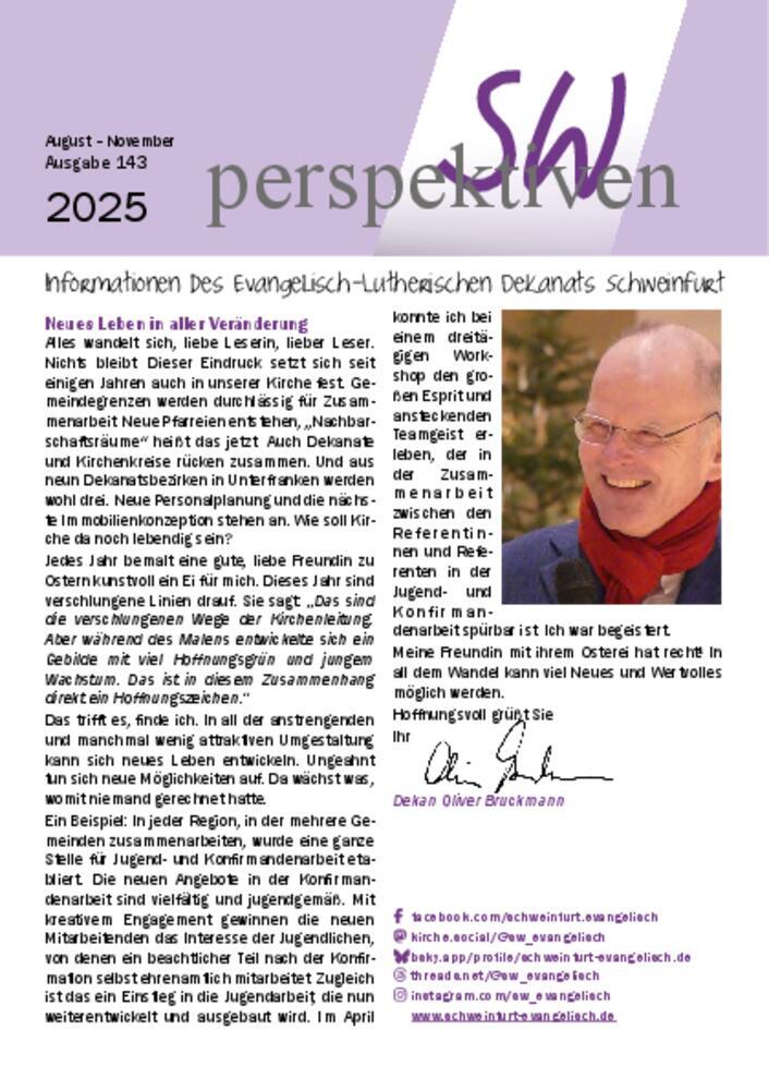 Das evangelisch-lutherische Dekanat Schweinfurt stellt sich hinter die Forderungen der Jugendlichen. Ihr werteorientiertes Eintreten für die Bewahrung der Schöpfung ist auch unser Anliegen. Alle wissenschaftlichen Untersuchungen weisen darauf hin, wie dringend jetzt drastische Maßnahmen zu mehr Klimaschutz umgesetzt werden müssen, um die Lebensgrundlagen der jungen Menschen für die Zukunft zu erhalten. Es gehört zum Kernbestand unseres Glaubens, dass wir das „ängstliche Harren der Kreatur“ (Römer 8,19) ernst nehmen. Unser Auftrag ist es, für die Schwachen einzutreten und damit auch für die Natur, die Kinder und Jugendlichen. Gleichzeitig wollen wir unseren Einsatz für Arme und Benachteiligte nicht vernachlässigen.