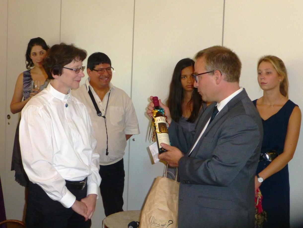 Am intensivsten fiel die Würdigung seitens des Kirchenvorstandes der Kreuzkirche aus. Dr. Rainer Dietrich zog einen historischen Bogen von der Einführung der Reformation in Oberndorf durch Pfr. Lorenz Heunisch im Jahr 1548 über 40 Pfarrherren dazwischen bis zur ersten – revolutionär! - Pfarrerin in Gestalt von Christhild Grafe. Zitat von Martin Buber: „Alles wirkliche Leben ist Begegnung“. So blieb der Oberndorfer „Noch-Pfarrerin“ nur noch „ein riesengroßes, dickes Dankeschön“ zu sagen übrig. „Ich bin wirklich im Dekanat verwurzelt und gehe erfüllt von der guten Zeit bei euch.“