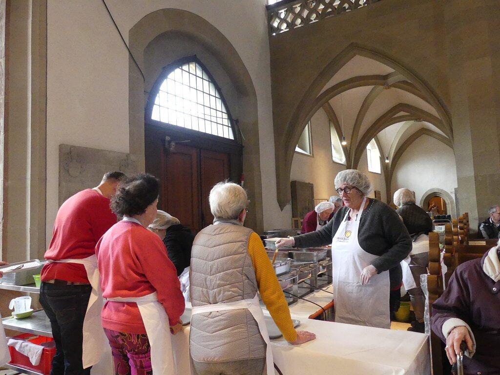 Besonders wichtig für das Gelingen der Vesperkirche ist das Engagement der insgesamt etwa 200 ehrenamtlichen Gastgebenden, die die Gäste herzlich empfangen und bewirten. Auch Kuchenspenden werden gerne entgegengenommen.