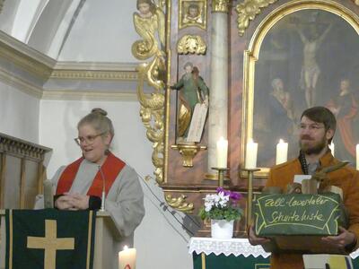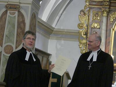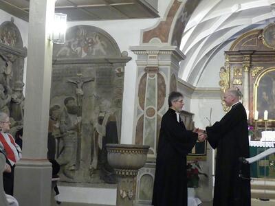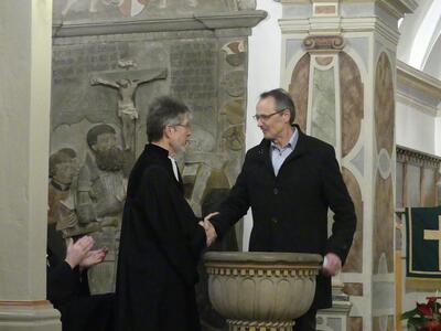 Dekan Oliver Bruckmann dankte Bonawitz für seinen langjährigen Dienst als „Such-Helfer“ im Lauertal. Besonders hob er sein Engagement für die Blinden- und Sehbehinderten-Seelsorge hervor, die er bereits in Schwebheim verantwortet hatte.
