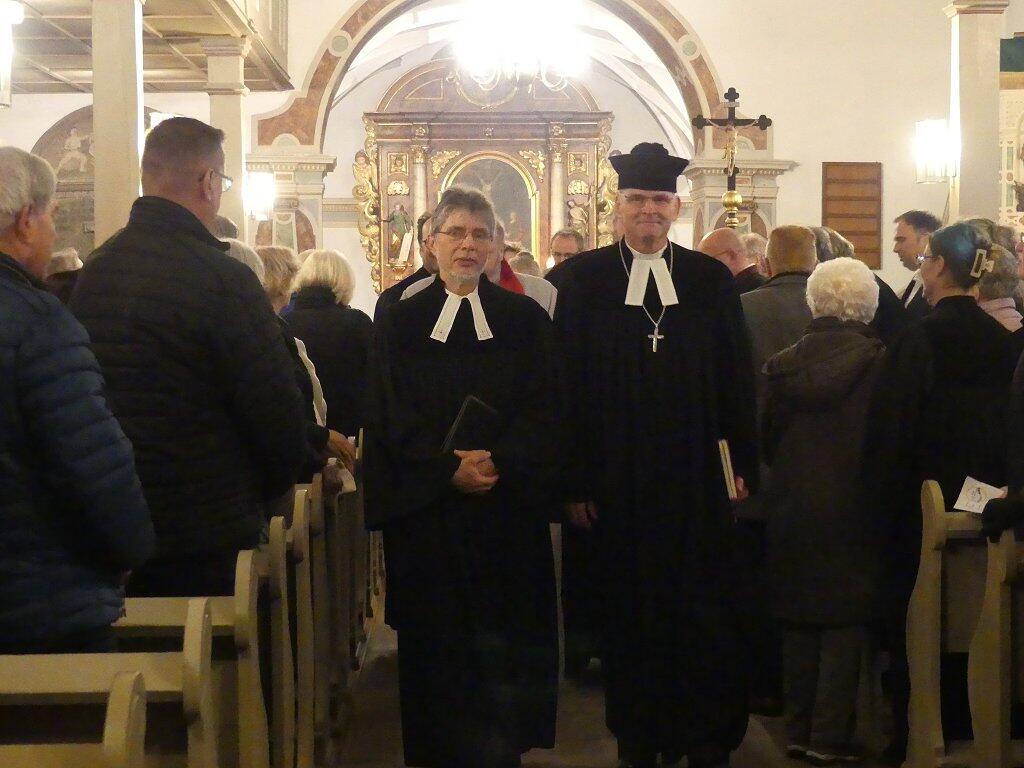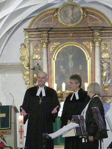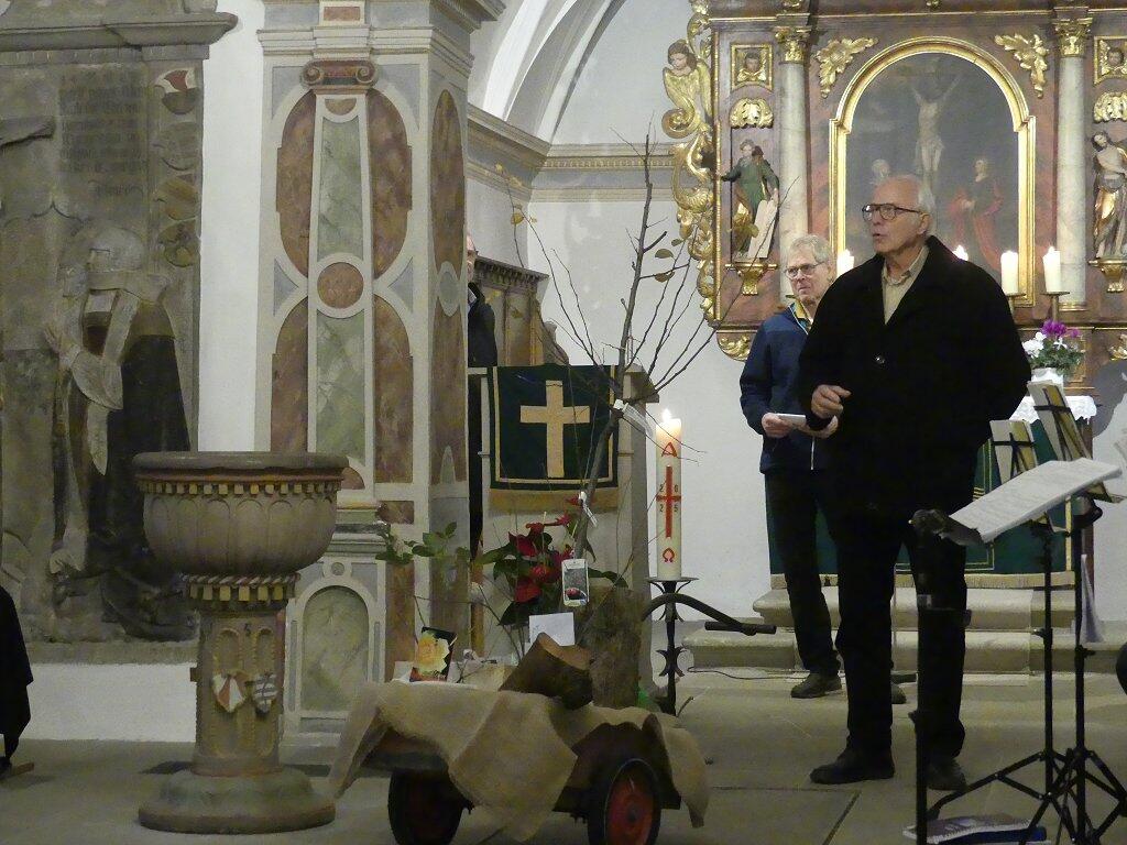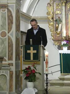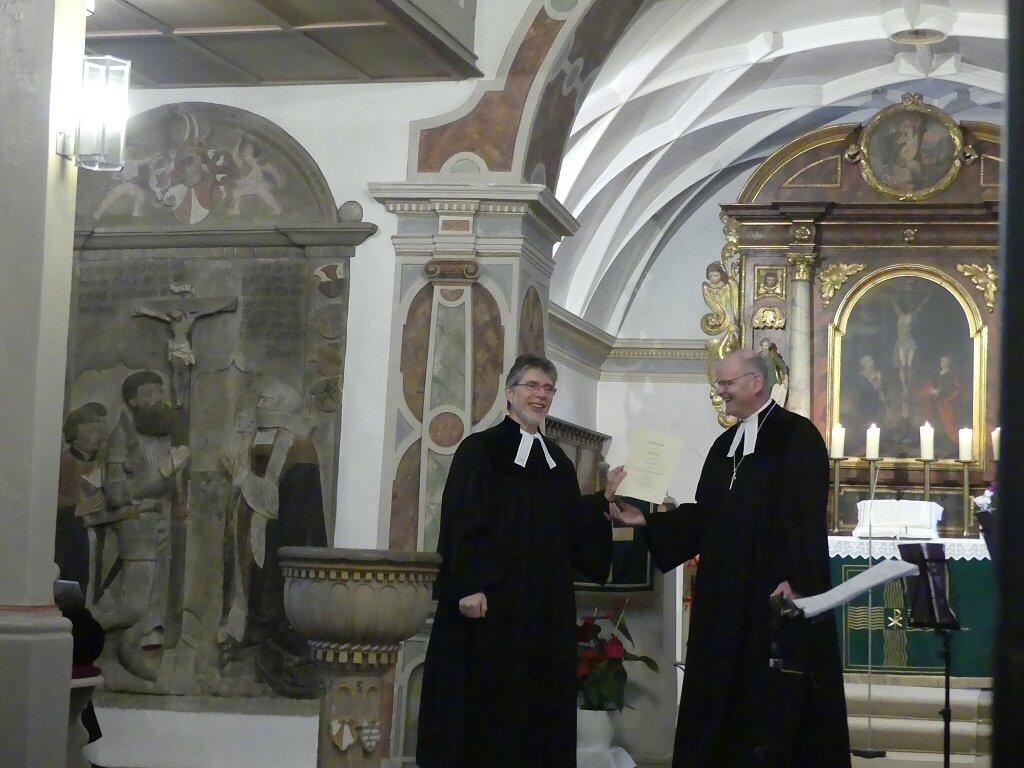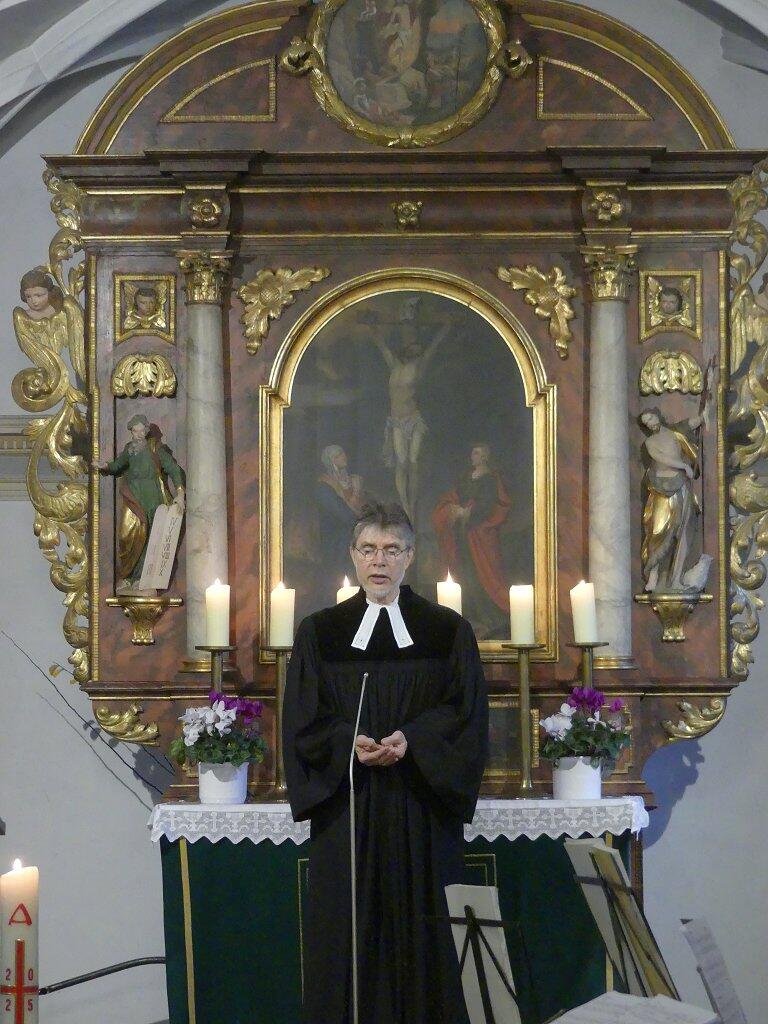 Nach einem Abschiedslied des gemeinsamen Kirchenvorstands bedankte sich der katholische Kollege Peter Rüb für die Zusammenarbeit in den letzten sieben Jahren. „Es war immer eine Freude, wir konnten uns gegenseitig die Bälle zuwerfen“.