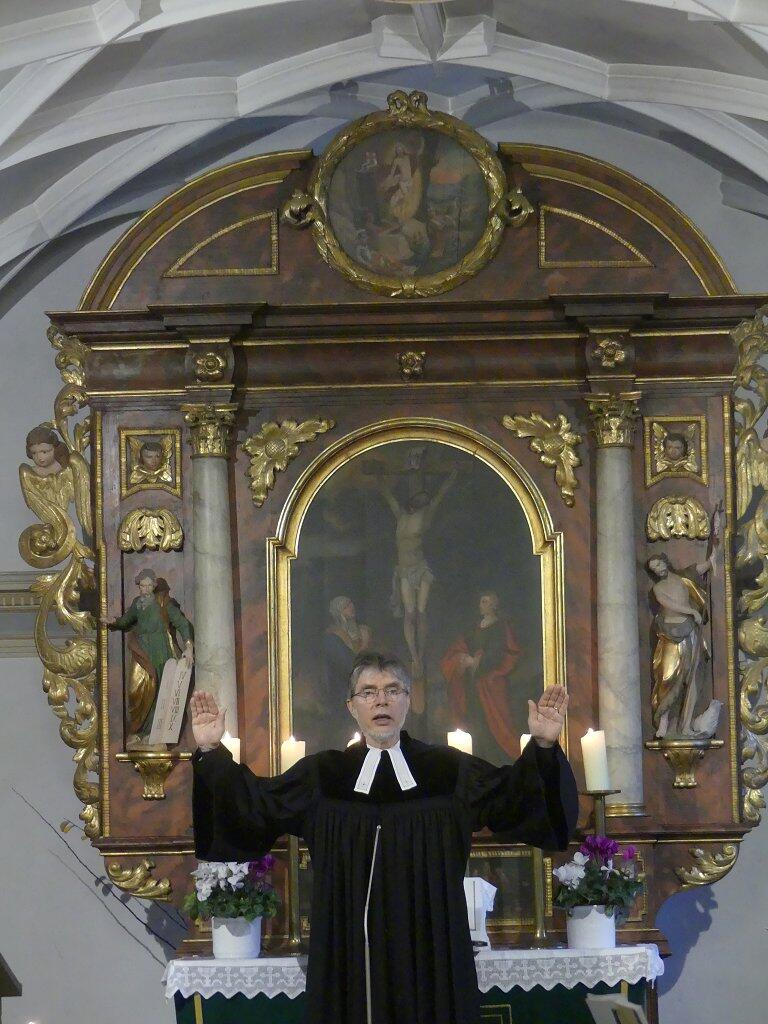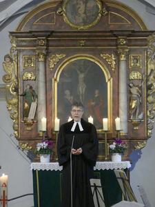 Bürgermeister Matthias Klement sprach auch im Namen der umliegenden Bürgermeister und von Landrat Thomas Bold. Er hob Hingabe, Engagement und das ausgeglichene Wesen des scheidenden Pfarrers hervor: „Ihr Herz schlug für die Menschen hier“.