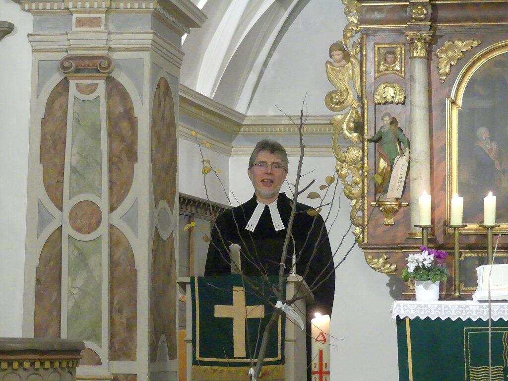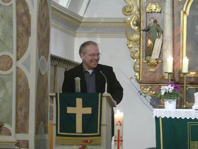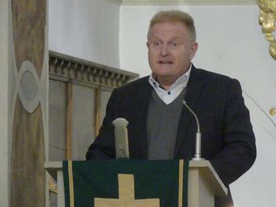 In seiner letzten Predigt als aktiver Pfarrer fragte Stefan Bonawitz: „Wo ist denn das Reich Gottes“? Oft sähen wir es nicht, blickten nur auf zurückgehende Zahlen – und doch sei es da: überall dort, wo Menschen füreinander da sind und sich für andere oder die Gemeinde einsetzen. Hier werde das Reich Gottes konkret spürbar, auch wenn wir uns manchmal wünschen, Gott deutlicher sehen zu können.