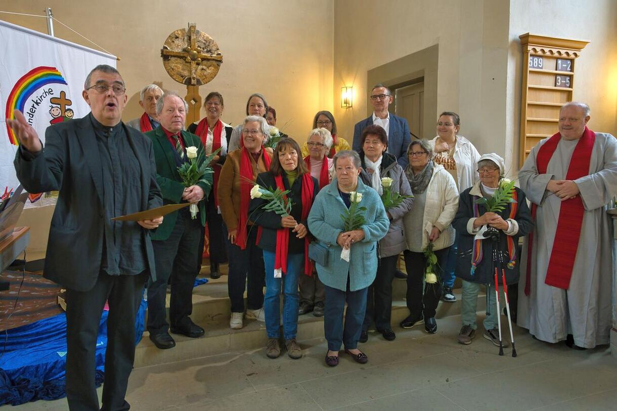 Auch Kirchenmusikdirektor Herr Jörg Wöltche schloss sich den Glückwünschen an und hob die Bedeutung des Chores für das Gemeindeleben hervor. Frau Marina Skrzybski und Herr Arthur Ebert wurden mit einer Urkunde ausgezeichnet.