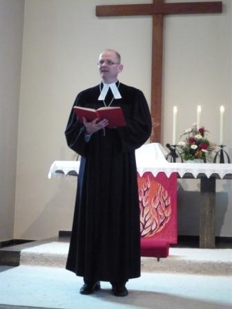 Dem 42-Jährigen war vom Landeskirchenrat zum 1. März 2012 die Pfarrstelle an der Christuskirche Schonungen übertragen worden. Den Eingangsteil des Festgottesdienstes im übervollen Gotteshaus gestaltete Pfr. Martin Schewe von der Schweinfurter Christuskirche. Er hatte die eineinhalb Jahre währende Vakanzvertretung innegehabt und wird auch den noch laufenden Konfirmandenunterricht zu Ende führen. Â