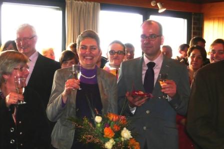 Sektempfang in illustrem Kreis: Pfr. Dr. Döbert mit Frau Barbara Bedacht |