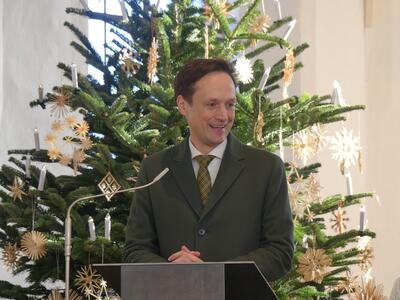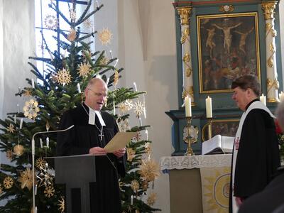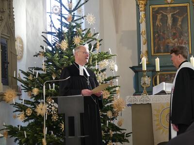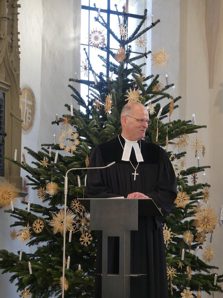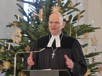 In seiner Predigt über 1. Johannes 1,1–4 nahm Bauer die Frage auf: „Wann ist Weihnachten vorbei?“ Weihnachten sei das anschaulichste Fest des Christentums, weil Gott den Menschen nahekommen wolle. Dieses Geschehen versetze bis heute auch Erwachsene ins Staunen. Entscheidend sei jedoch nicht allein das eigene Erleben, sondern das, was weitergegeben werde – durch Eltern, Großeltern, Freundinnen und Freunde, Lehrkräfte und Wegbegleiter. Diese Botschaft sei eine frohe Botschaft für alle und richte zugleich den Blick auf Menschen, die kaum Freude empfinden können: auf Flüchtlinge, Verfolgte und Menschen in Not. Als Fest ende Weihnachten spätestens mit Lichtmess, so Bauer, „als Glaubensereignis aber geht es weiter, wo diese Botschaft weitergegeben wird“.
